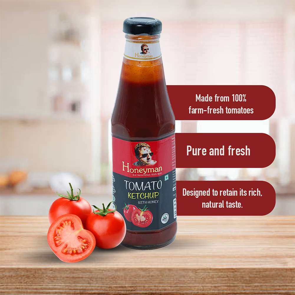 🍅 Honey Tomato Ketchup – A naturally sweetened twist on the classic ketchup, blending juicy tomatoes with honey for a rich, tangy flavor that pairs perfectly with snacks, fries, and sandwiches.